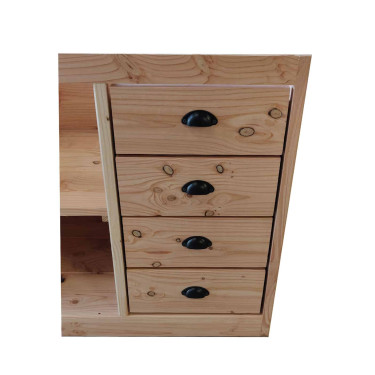 Voor het blad hebben we 3 verschillende opties, het standaard blad wat uit standaard Douglas planken wordt gemaakt. Ook hebben we de mogelijkheid om de keuken te leveren met een massief blad van hout of beton. LET OP! Bij een Douglas blad kan het blad gaan torderen.